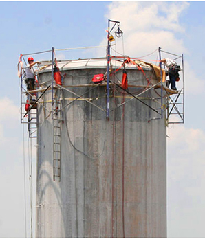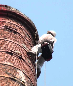 Проведение ремонта дымовых труб при помощи промышленных альпинистов